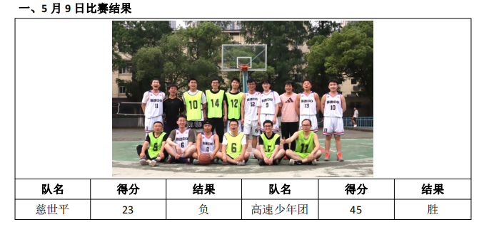 5 月 9 日篮球赛比赛战报及后续比赛通知