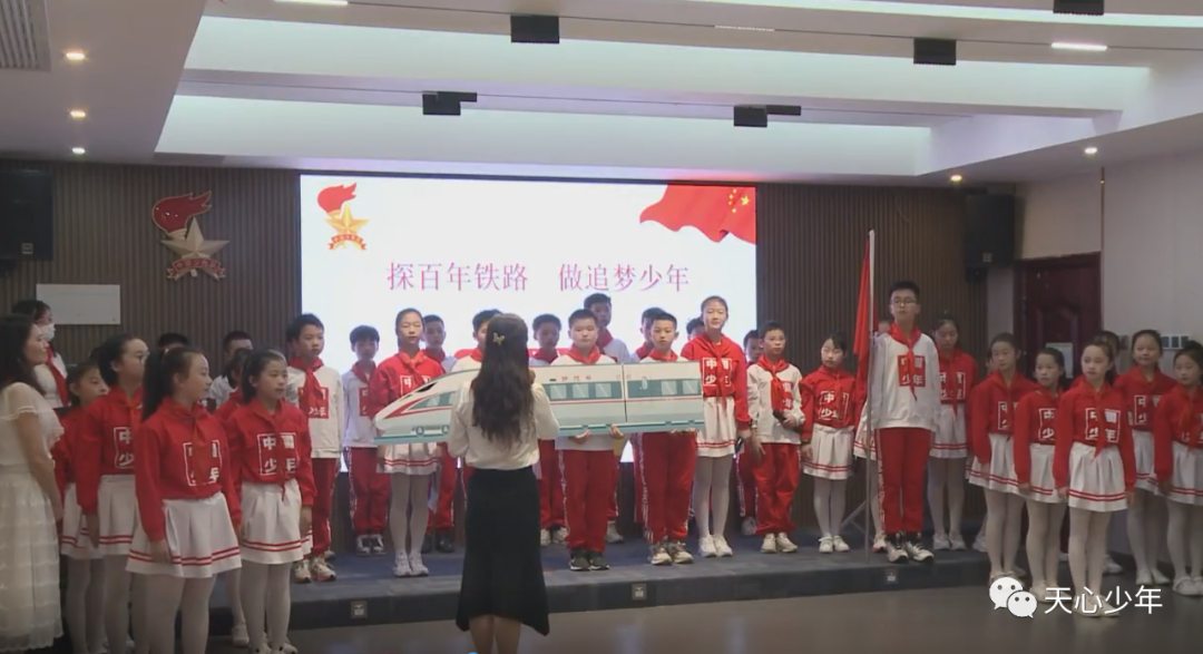 接下来,中南大学第二附属小学中队辅导员陈丛奕老师带领梦想中队带来了《探百年铁路,做追梦少年》队会展示。队会分为三个篇章:“筑梦”荣光——寻百年历程,“逐梦”先锋——追榜样足迹,“追梦”少年——看强国有我 。本次队会还邀请了中南大学铁道学院高速列车中心团队周伟叔叔来到现场接受队员们的访谈。一百年风雨兼程、砥砺拼搏,队员们从中不仅看到了中国铁路的发展历程,更深刻感受到一代代铁路人敢于创新、团结合作、乐于奉献的精神。他们从中传承了红色薪火,立志要为实现中国梦接续奋斗,成为一颗闪闪发光的未来之“星”。