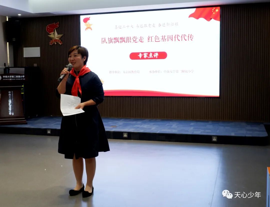 习近平总书记曾深刻地指出:“少年强则国强。当代中国少年儿童既是实现第一个百年奋斗目标的经历者、见证者,更是实现第二个百年奋斗目标、建设社会主义现代化强国的生力军。”队旗飘飘跟党走,天心区辅导员团队将牢记党与国家赋予的使命,努力谱写立德树人新篇章。让红色成为少先队员们的精神底色,让红色基因代代传承,引领塑造一批批有理想、有本领、有担当的时代新人成为共产主义事业的接班人!