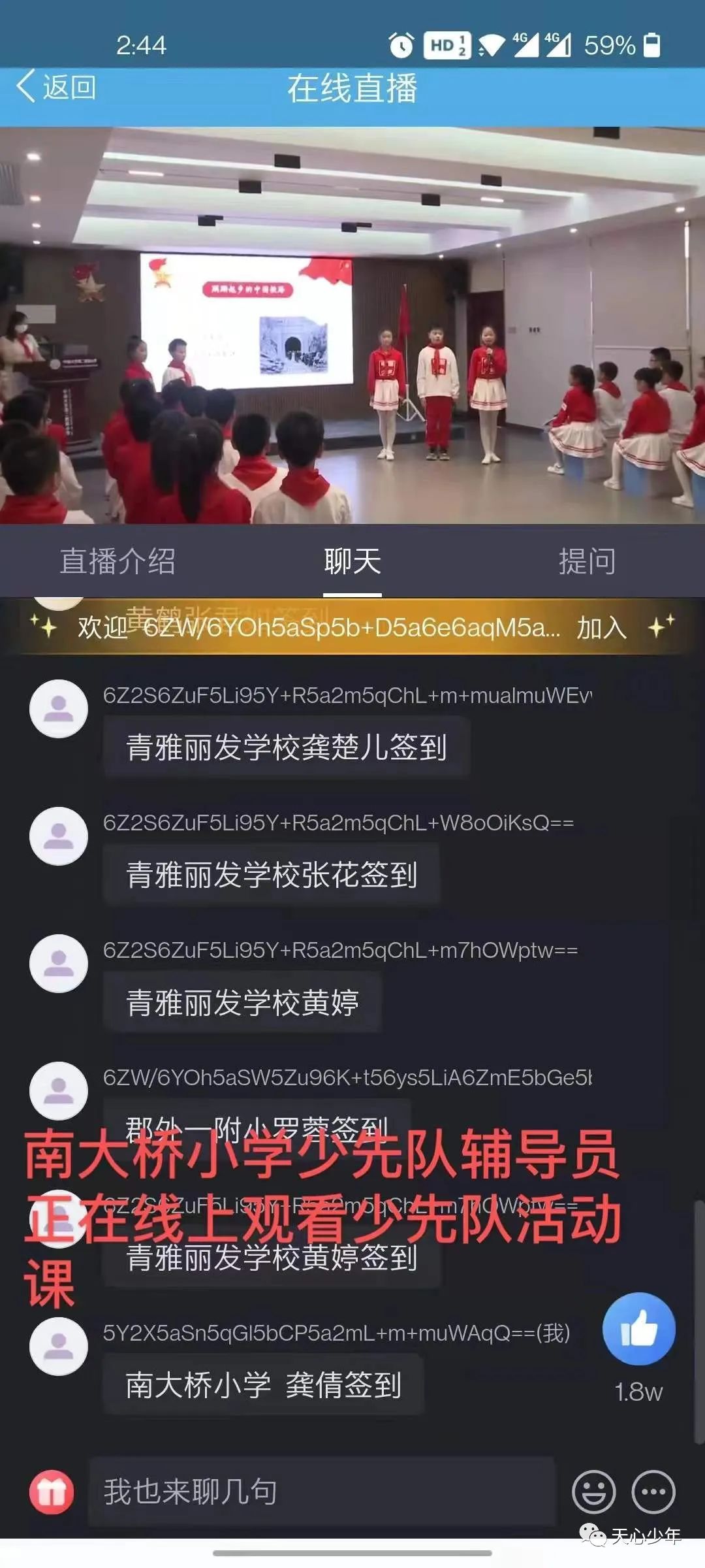本次研讨会采用线下+线上相结合的模式进行。天心区各学校近千名少先队辅导员通过天心智教平台进行线上学习,中南大学第二附属小学还组织全体师生共同观看、学习。