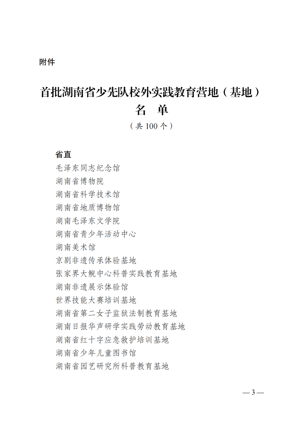 附件:首批湖南省少先队校外实践教育营地(基地)名单