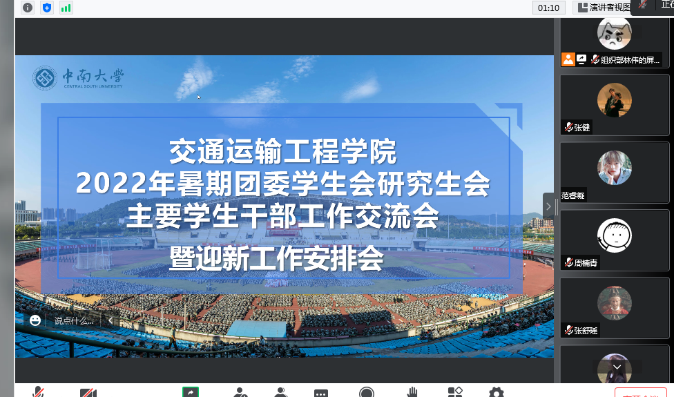 2022年8月24日下午3点, 2022年暑期分团委、学生会、研究生会主要学生干部工作交流会暨迎新工作安排会于线上顺利举行,会议由分团委组织部林伟主持,团委副书记张健老师和郑繁简老师、2022级...