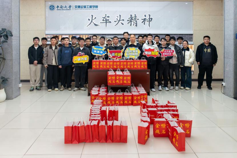12月15日11时, 在交通楼一楼大厅举行考研学子慰问活动。学院党委书记袁世平、党委副书记李苑、辅导员张健、蔡明旭、阮琼参加活动,为即将奔赴考场的学子们送上精心准备的“金榜题名”考研礼包及诚挚祝福。在温馨热烈的氛围中,袁世平书记、李苑副书记及各位辅导员老师共同将满载着学院祝福的考研礼包亲手递到每一位到场的考研学子手中。老师们与同学们亲切握手,详细询问了同学们的复习进度、身心状态...
