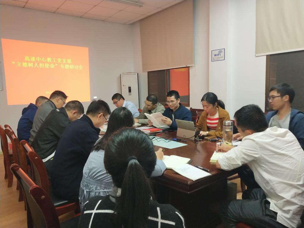 2019年10月16日晚上7点,高速列车研究中心教工党支部在321党员活动室召开“立德树人担使命”专题研讨会。交通运输工程学院党委委员张英贵副院长出席并指导,支部书记鲁寨军主持会议,支部全体党员参加会议。 在学校党...