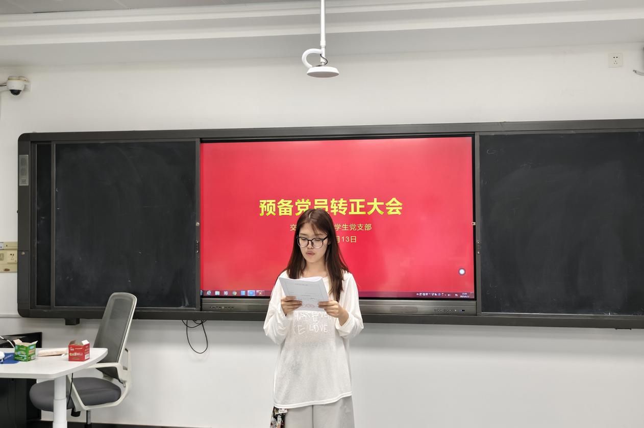 罗汇祎、杨凯同、高晨轩、黄伟君、蒋昊轩、徐雨轩六位同志依次上台宣读《转正申请书》,从思想觉悟的提升、工作学习中的表现,到对党的理论知识的学习与践行,全面汇报了自己在预备党员期间所取得的进步与不足,并向党组织提出转正申请。随后,姚若冰同志和陈镜茹同志代表支委宣读了支委会关于六位预备党员的教育考察情况报告,肯定了其在预备期内的成长与进步。接着,与会党员围绕转正对象的汇报和培养考察情况,展开了充分讨论并发表意见。经过无记名投票表决后,大会一致同意罗汇祎、杨凯同、高晨轩、黄伟君、蒋昊轩、徐雨轩六位同志按期转为中共正式党员。姚若冰同志对成功转正的同志表示祝贺,并强调党员们要时刻保持先进性,严格遵守党的纪律,持续提升自我,发挥模范带头作用。