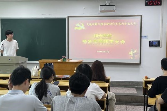 6月13日上午10:00,研究生第六党支部在世纪楼A303教室举行预备党员转正大会暨师生党员培训第二课交流研讨会,会议由支部书记陈灏主持。