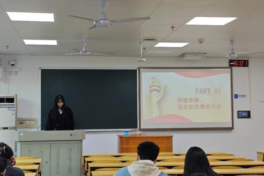 会议第一项,由李思宇、尹慧雯两位同志作微党课分享。李思宇同志以《深入学习贯彻党的二十届四中全会精神——迈向新征程的行动纲领》为题,从会议背景意义、“十四五”“十五五”发展方位、战略部署及学习贯彻路径展开解读,明晰 “发扬历史主动,办好自己的事”的精神内核;尹慧雯同志聚焦《以高质量发展新成效谱写中国式现代化新篇章》,深入阐释“十五五”时期高质量发展主题与现代化产业体系建设等核心任务。两位同志的分享脉络清晰、重点突出,帮助全体党员进一步准确把握全会精神的核心要义与实践要求。