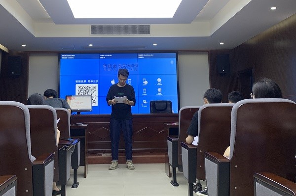 会议伊始,黄湘智同志介绍了本次会议的基本流程。随后,四位发展对象依次上台详细介绍个人基本情况。刘鹏杰同志首先从自身响应并参与党史学习教育,耳濡目染身边优秀党员同志为师生服务的事例,结合自身的成长经历,就研究生期间如何做到增强服务意识、提升服务本领四个方面宣读了入党志愿。其后,石锦岳同志结合青少年时期接受的先进中国共产党党员事迹的熏陶、自主学习党的理论知识、未来的努力方向几个方面宣读了入党志愿。之后,涂茨同志在入党志愿中谈到了接受党组织在理论学习和个人成长方面的教育关怀,结合当下对我国人民在党的领导下打赢疫情防控和脱贫攻坚两大战役的认识,并回顾了入学以来通过担任学生工作为同学服务的经历,表明了继续严于律己、奉献他人的决心。最后,韦雨露同志谈到了个人入党动机、思想动态的变化,以及成为积极分子以来,党员标准对自身起到的鞭策作用,表达了继续努力提升自我、积极服务同学的决心。