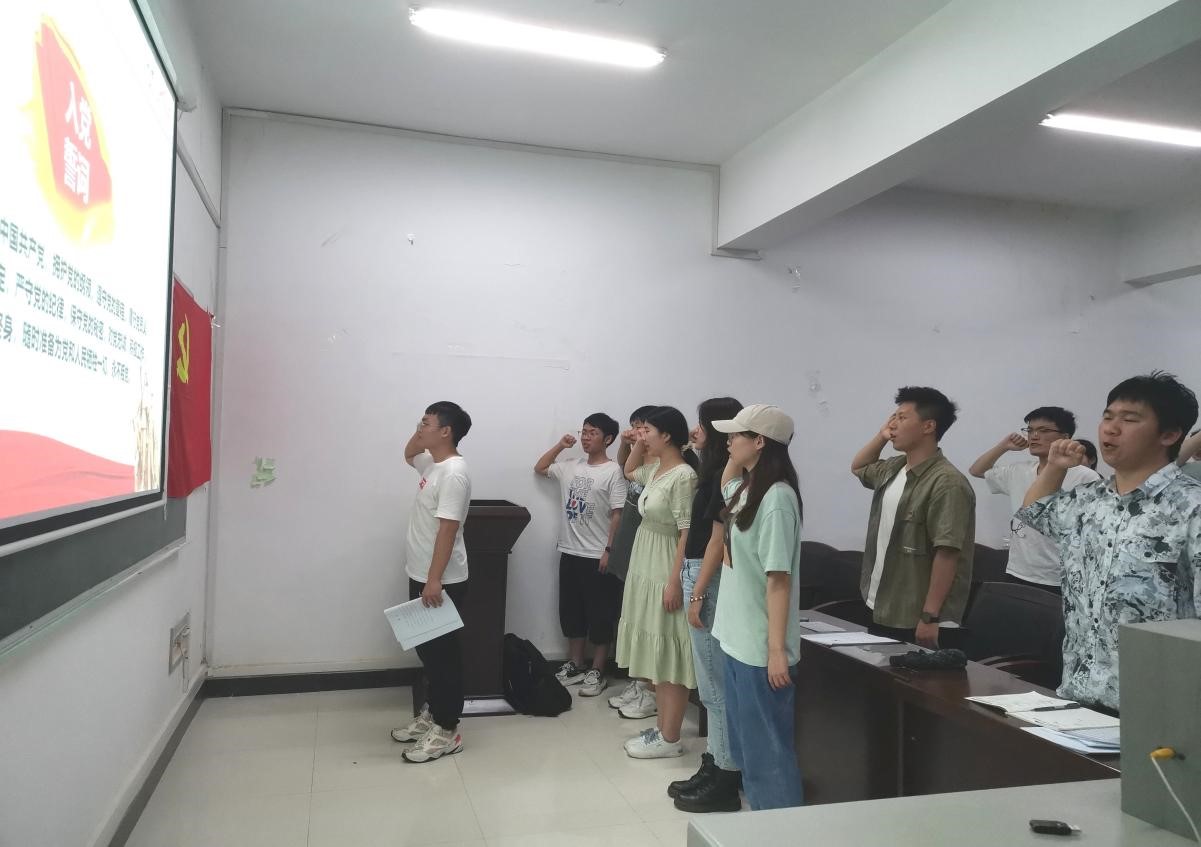 随后,新成为预备党员的杨佳乐同志带领大家面向党旗,举起右拳,庄严宣誓,在铿锵有力的宣誓声中,对党坚贞不渝的理想信念深深地扎根在每一位党员同志的心中。相信与会党员们也会将誓言融入行动,牢记初心使命,为共产主义事业奋斗终身!