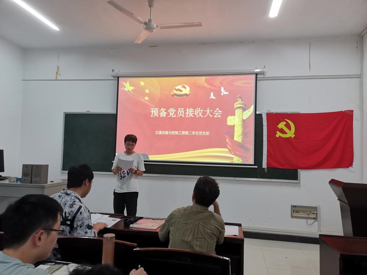 6月5日晚7点,交通设备与控制工程第二学生党支部在交通楼515教室召开了预备党员接收大会。大会应到正式党员8人,实到正式党员7人,符合预备党员接收会条件。此次会议由江禄民同志主持。