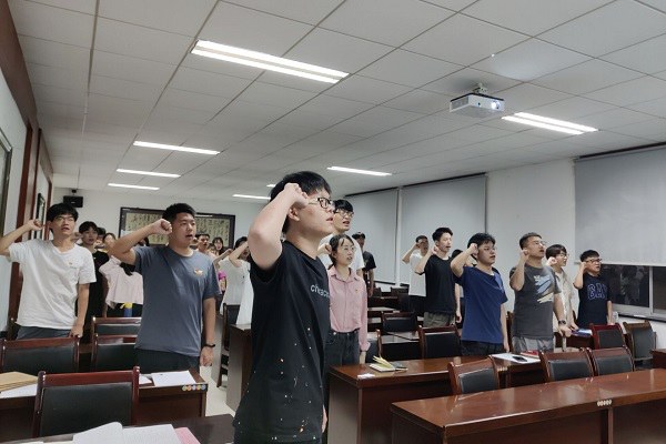 会议最后,支部书记黄湘智同志带领全体党员重温入党誓词,并对成为预备党员的三位同志表示祝贺,希望三位同志在以后的学习、工作和生活中,时刻牢记党员身份,发挥出一名共产党员的旗帜引领作用。