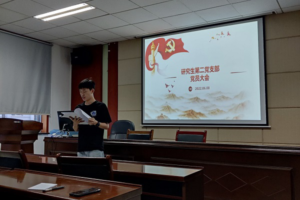 6月10日晚上19:00,研究生第二党支部于交通楼513教室召开全体党员大会,讨论是否接收孟宪伟、吴紫健、李旻三位同志为中共预备党员的事宜。会议由支部书记黄湘智同志主持,支部全体党员参加。