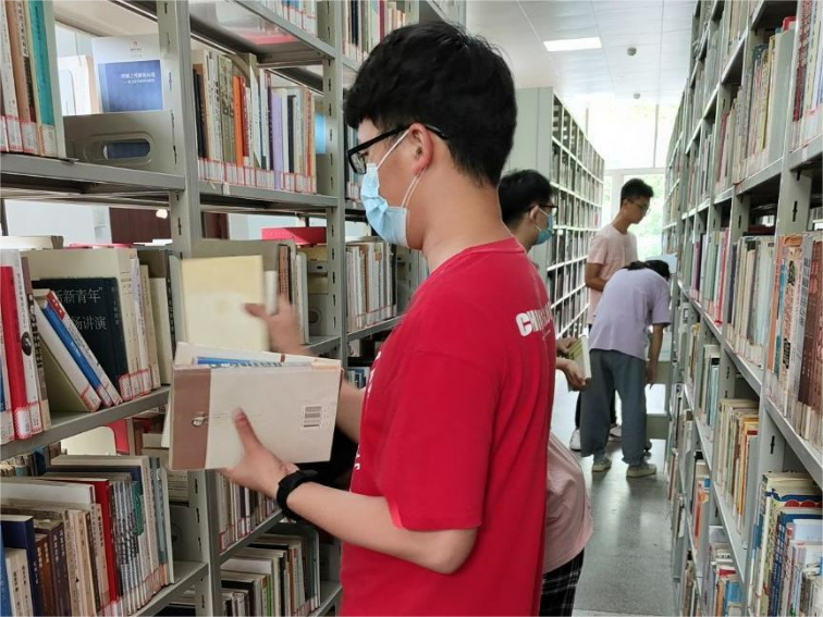 书籍整理小组主要负责将乱序书籍摆放到序号指引的正确位置,也整理书架图书,便于同学们日后的借阅。在图书馆老师的指导下,支部同志了解了图书摆放的规则及具体操作流程,随后明确分工,有条不紊地开始了劳动。支部同志们用自己的细心与耐心,高质量、高效率地完成了这项从未接触过的工作,并且得到了老师和读者的高度评价。
