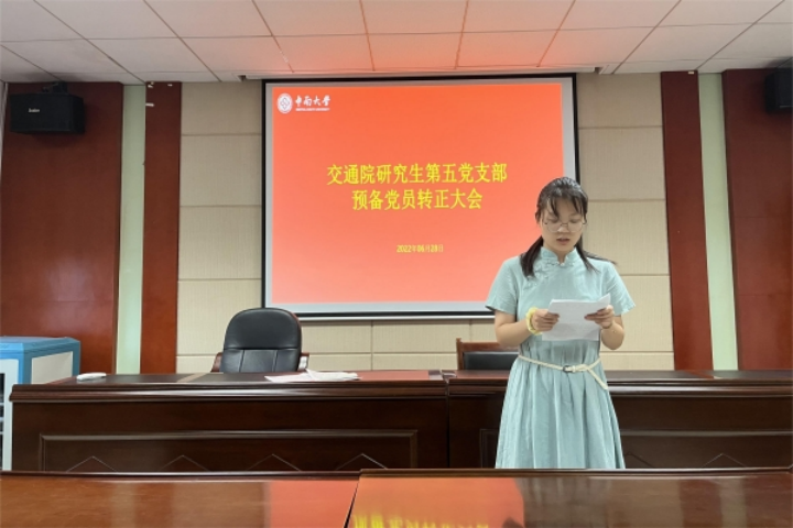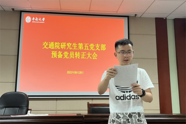 交通运输工程学院研究生第五党支部预备党员转正大会顺利举行