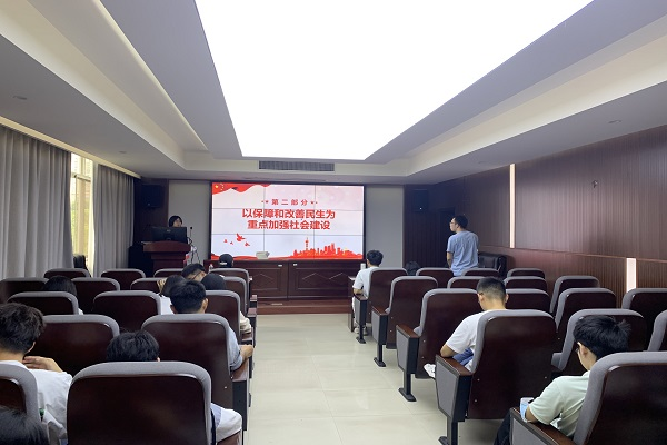 张钟涵同志主要回顾了中国共产党百年光辉历史,诠释了中国共产党的伟大建党精神。郭枭剑同志从加快建设社会主义法治国家和坚持人与自然和谐共生两方面进行汇报,阐述要实施好民法典、人与自然和谐共生以及谋划好经济社会发展之路等观点。王珏同志主要围绕“高举旗帜 勇毅前行”这一主题,先对现阶段我们党和国家所取得的胜利进行总结,并呼吁同志们勇于反思自身,勇于自我革命,进而持续做到自我净化、完善、革新与提高。杜紫嫣同志则主要围绕统筹疫情防控和经济社会发展两大主题,向同志们讲述为何要以保障和改善民生为重点加强社会建设,以及如何推动构建人类命运共同体,践行真正的多边主义。