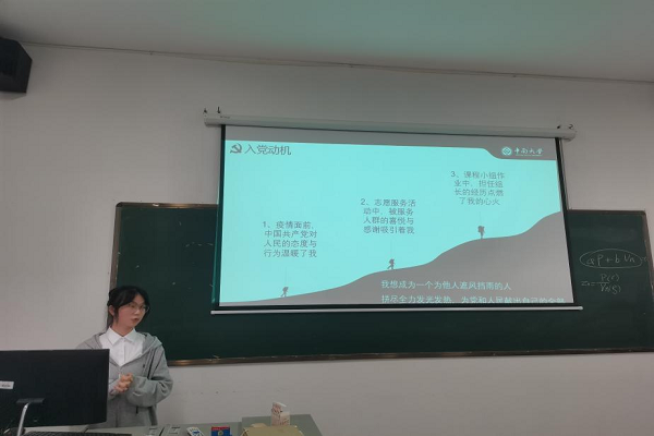 此次共有18名拟发展对象候选人进行汇报,其中19级同学6名,20级同学9名,21级同学3名。各拟发展对象从个人学习与生活、对党的认识、入党动机、自身不足之处与改进等方面向党组织进行汇报。