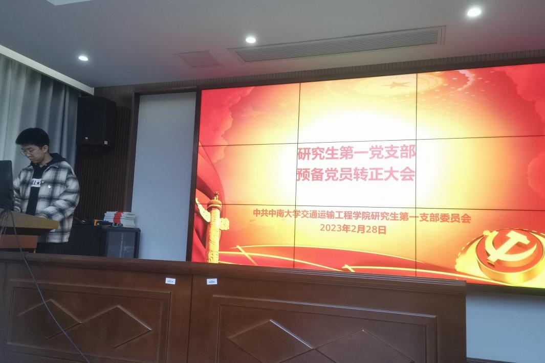 2月28日下午15:00,交通运输工程学院研究生第一党支部在交通楼425举行了预备党员转正大会。会议由支部书记刘家忱同志主持。