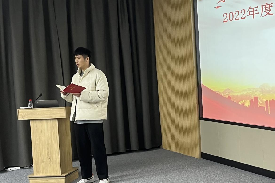 会议伊始,党支部书记张则栋同志代表支委会向党员大会述职。张则栋同志围绕支部党员基本情况、“以理论学习、党日活动、制度健全、组织建设为抓手”、“加强支部建设、支部特色、总结展望”等方面,对研究生第四党支部2022年工作进行了总结。他表示,在接下来一年中,党支部也将继续发挥战斗堡垒作用,继往开来,砥砺前行。