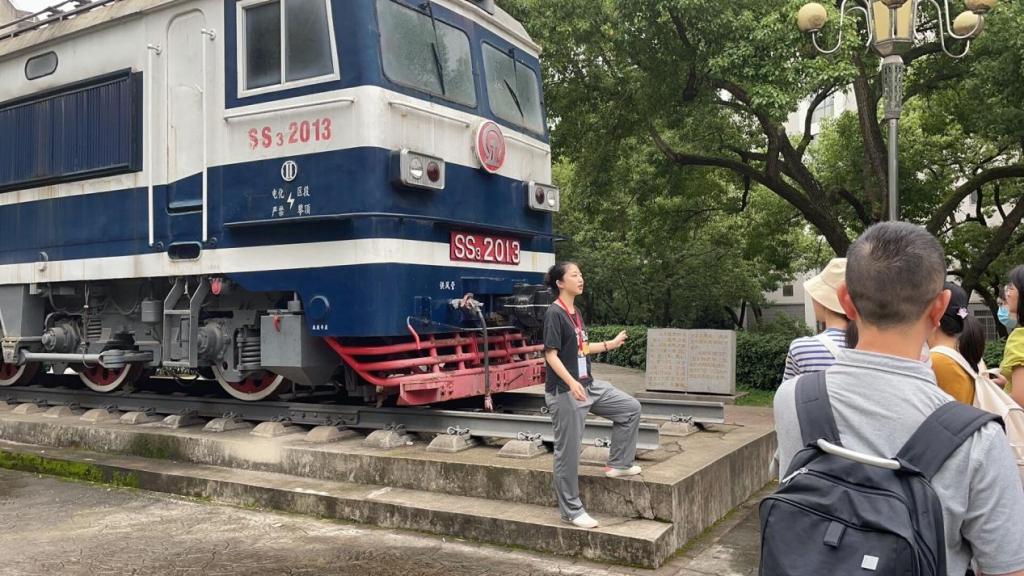 在铁路园,伴随科普基地志愿者的讲解,学员们先后参观了园内陈列的三辆机车——蒸汽机车、内燃机车和电力机车,这三辆机车是我国轨道交通建设的三个历史方碑,代表了我国轨道交通从无到有,从弱到强,更新换代三个历史阶段。通过志愿者的讲解,学员们了解了我国轨道交通发展历程与铁道学院建立的渊源,知悉了铁路开拓者的艰苦奋斗故事,领略到我国轨道交通建设者的开拓进取精神。同时作为科普基地的重要组成部分,承载着中国铁路发展历史和火车头精神的铁路园已然成为各来访者开展科普活动的第一站和铁道校区的一张亮丽名片。