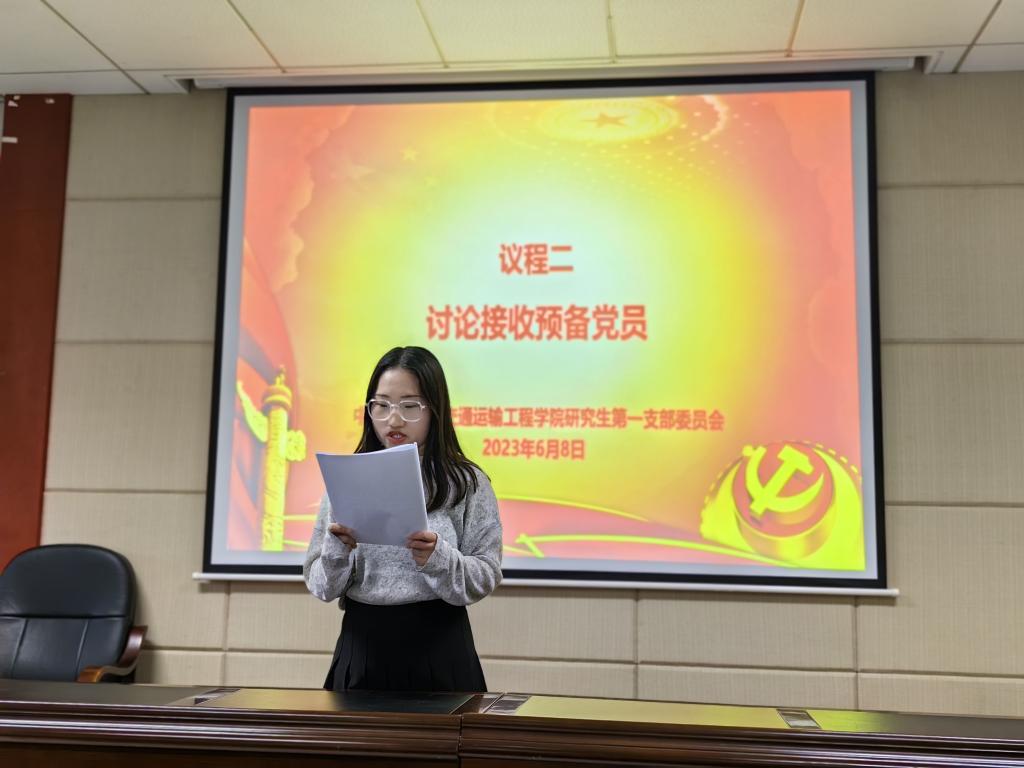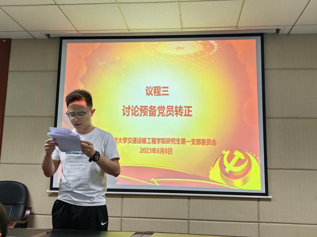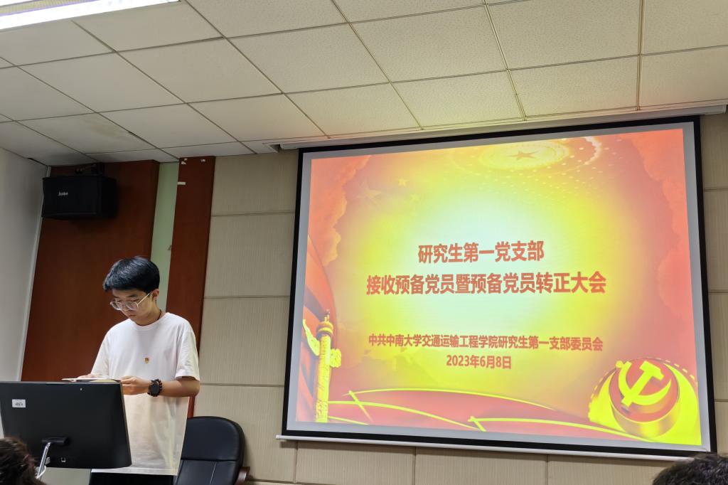 6月8日晚上19:00,学院研究生第一党支部在交通楼513举行了接收预备党员暨预备党员转正大会。会议由支部书记刘家忱同志主持。