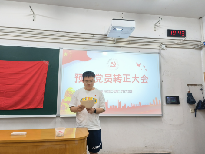 预备党员接收大会结束后,进入预备党员转正大会。杨佳乐、易思睿、暴德顿、尹伟齐、陈思薇、宋泽坤、刘婉婷七位同志依次宣读转正申请书,汇报了一年预备期内自身在思想认识、专业学习、服务群众等方面的表现,认真分析了自身存在的缺点及改进措施,表明了愿意接收党组织长期考验的决心。经支部大会讨论,七位同志在预备期内不断提高思想政治觉悟、发挥先锋模范作用,符合成为正式党员的条件。经支部党员无记名投票,支部大会同意七位同志如期转为中共正式党员。
