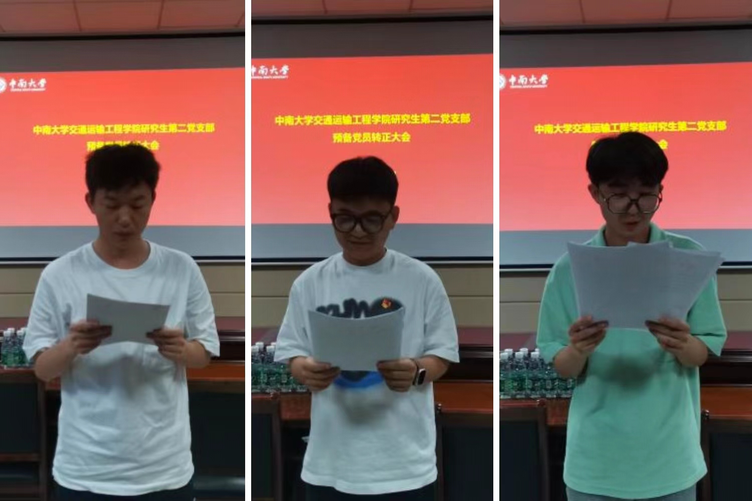 预备党员接收大会结束后,支部进行预备党员转正会议。孟宪伟、李旻、吴紫健三名同志分别从自己在预备期间的思想动态、实际表现及入党决心等方面进行总结汇报。副书记陈依婷同志代表支委会向支部大会报告征求党员和群众意见情况以及支委会考察意见。经无记名投票结果,大会通过了三名预备党员同志的按期转正申请。