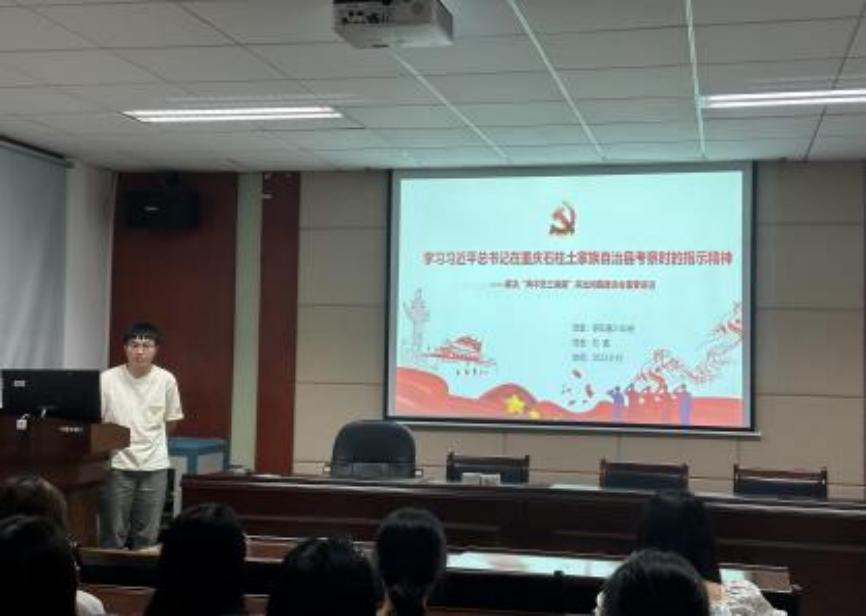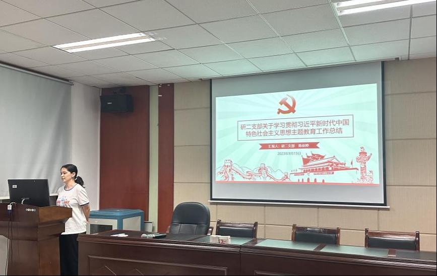 会上,陈依婷同志首先带领大家学习《中国共产党党徽党旗条例》,强化支部党员规范使用党徽党旗的意识。随后,她对本次主题教育作总结发言,回顾主题教育工作开展的背景及时间线,总结支部过去几个月主题教育开展情况,针对主题教育过程中支部存在的不足之处提出了改进意见。她提出,支部全体党员同志应当继续学习贯彻习近平新时代中国特色社会主义思想,进一步统一思想、统一意志、统一行动,坚定拥护“两个确立”,坚决做到“两个维护”,从习近平新时代中国特色社会主义思想中汲取不懈奋斗的动力。