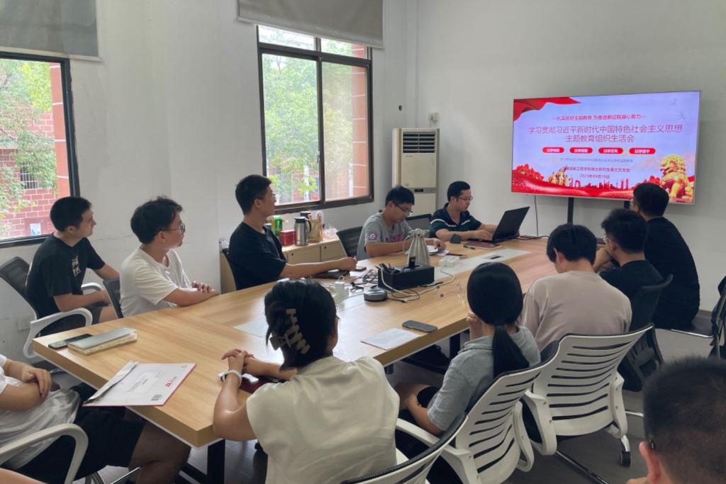 首先,同志们对支部新加入的党员同志表示欢迎,四位新生党员分别进行自我介绍,并表示会积极迎接新学期的工作和科研学习任务,在生活中发挥党员的先锋模范作用,与支部共同进步。接着,支部书记阳程星同志带领支部同志进行习近平新时代中国特色社会主义思想主题教育的学习,从学思想、强党性、重实践、建新功四个方面阐释了此次主题教育的具体要求和深刻内涵。他指出,各位党员同志应牢记主题教育的总要求,学习理论、掌握本领,增强党性、坚守本心,注重实践、外化于行,履职履责、勇毅前行。