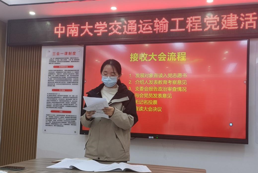 交通运输第一学生党支部预备党员接收大会顺利举行