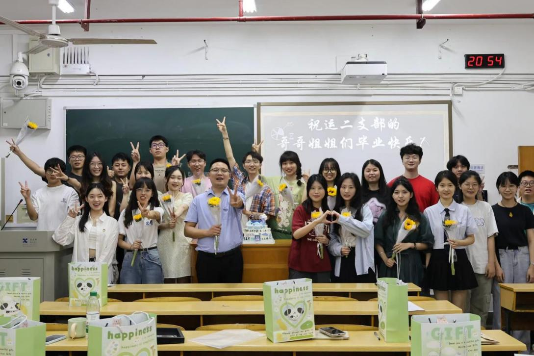 随后,由刘思序同志主持毕业生党员欢送会。支部准备了回顾过往的PPT,一起观看了支部同志精心准备的毕业祝福视频。视频中,低年级的同志们表达了对毕业生党员们的美好祝愿。