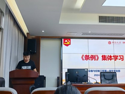 6月29日晚19:00,交通设备与控制工程第一学生党支部在交通楼425开展了“学好用好《条例》,守住守牢初心”党纪学习教育主题党课,对2023年12月27日新修订的《中国共产党纪律处分条例》进行了全面的学习,本次党课由支部书记郑繁简讲授,党支部全体同志参加。