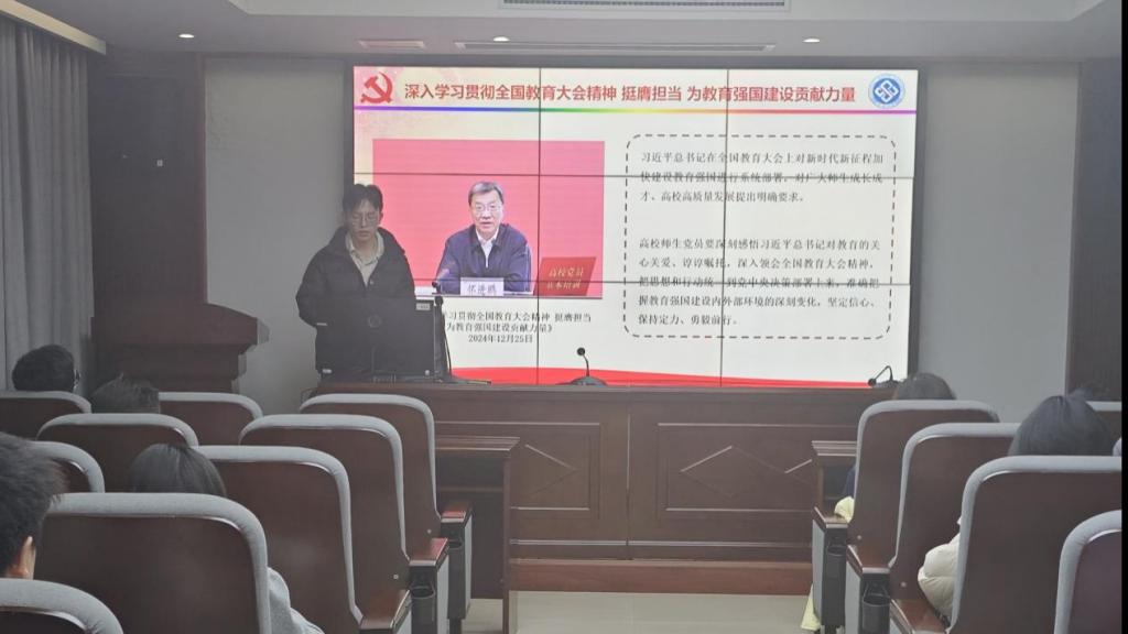 会议第一项,由支部副书记王耀鹏同志带领大家对两次集中培训内容进行回顾。针对“全面深化改革”的集中培训,王耀鹏同志着重分享了党的领导在全面深化改革中发挥着党总揽全局、协调各方的核心作用。针对“教育强国”的专题培训,王耀鹏同志主要介绍了高等教育在教育强国建设中的龙头地位,他表示作为新时代的学生党员,我们肩负着实现教育强国梦的历史使命和责任。这要求我们要紧跟时代步伐,不断学习新知识、新技能,提高自己的综合素质和竞争力,为教育强国贡献自己的力量。