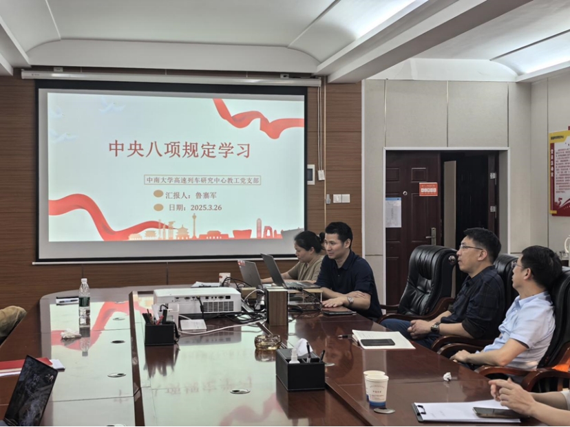 3月26日下午, 高速列车研究中心教工党支部,聚焦中央八项规定、全国两会精神、AI赋能三大主题,组织支部全体党员及中心教职工在高速北楼201党员活动室开展政治学习。