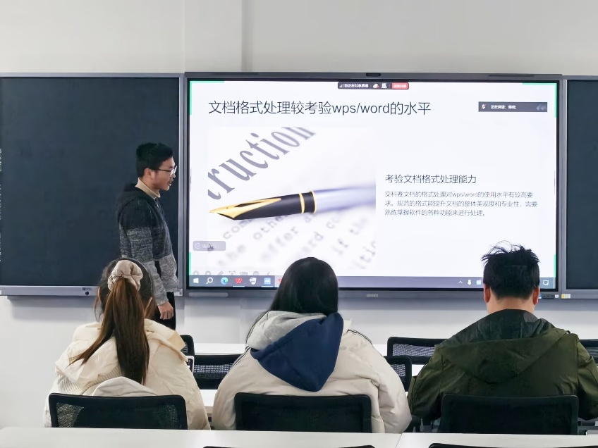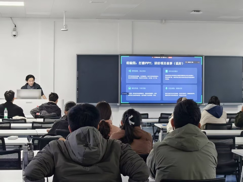 首先,陈哲飞同学进行了自己的经验分享。从竞赛最基础的文档修改与处理,到PPT制作,再到最后的现场答辩,他从三个方面进行了讲解和经验传授,让同学们明确了备赛要求,提升了备赛效率。