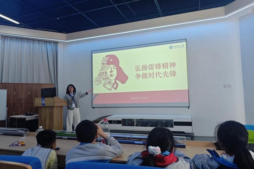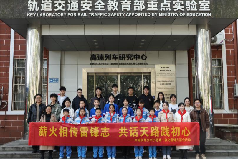 团委、学生会携手雅礼中南附属中学(天心校区)、中南大学第二附属小学,开展“薪火相传雷锋志,共话天路践初心”——大中小思政一体化雷锋月主题活动。活动以高速列车科普为纽带,组织大中小学生走进高速列车研究中心,通过知识讲解、模型展示、互动问答、实践体验等形式,将高速列车知识与“雷锋精神”深度融合,让青少年在沉浸式体验中厚植爱国情怀、涵养科学素养,推动大中小思政教育在一体化建设中走深走实。