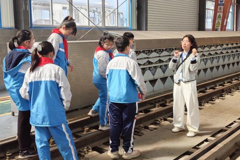 随后,学生们前往碰撞实验室参观学习。讲解员介绍列车碰撞测试的实验装置和标准测试方法,重点阐释吸能、防爬装置工作原理及车体材料优化等核心安全防护技术。通过展示科研成果,让学生体会科研工作者对列车安全的严谨态度,在心中种下崇尚科学、追求极致的种子。