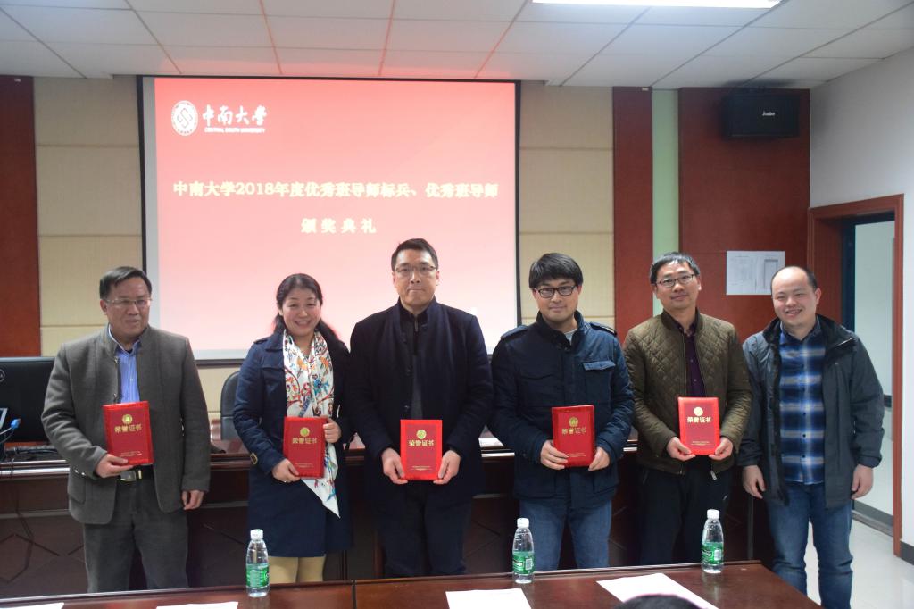 紧接着,进行大会第二项议程,对中南大学2018年度优秀班导师标兵、优秀班导师进行表彰。学院刘辉副院长为获得优秀班导师标兵称号的叶峻青老师以及获得优秀班导师称号的姚松老师、向军老师、章易程老师、陈锋老师、周伟老师颁奖。