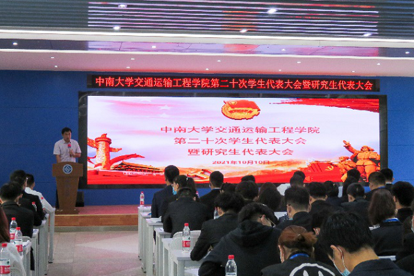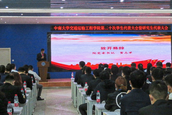 第二十次学生代表大会暨研究生代表大会在铁道校区立志厅顺利召开。学院党委书记贺志军,党委副书记宋晓东,副院长彭勇,全体辅导员老师,以及来自学院各个年级共220名学生代表参加会议。