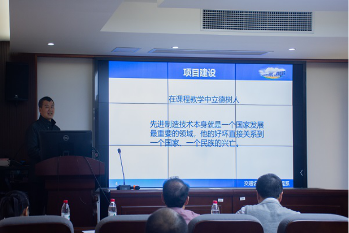 为贯彻落实学校课程思政建设相关工作要求,进一步完善学校课程思政工作方案,10月27日下午14:30,交通运输工程学院课程思政中心于交通楼425教室举行了思政项目答辩会,会议在激扬热烈的气氛中一直持续到下午18:30。学校教学督导、马克思主义学院谭希培教授、学院党委书记贺志军、学院副院长彭勇、副院长张英贵、党委委员叶峻青、综合办主任邹杨华出席本次会议并担任评委。会议由学院副院长陈维亚(图1)主持。