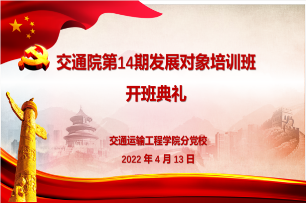 4月13日下午15:00,交通运输工程学院分党校第14期发展对象培训班开班典礼以线上形式顺利举行。学院党委宋晓东副书记、学院组织干事张佳琪老师、培训班班导师陈晨老师出席本次会议,培训班全体学员参加会议,开班典礼由班导师陈晨老师主持。
