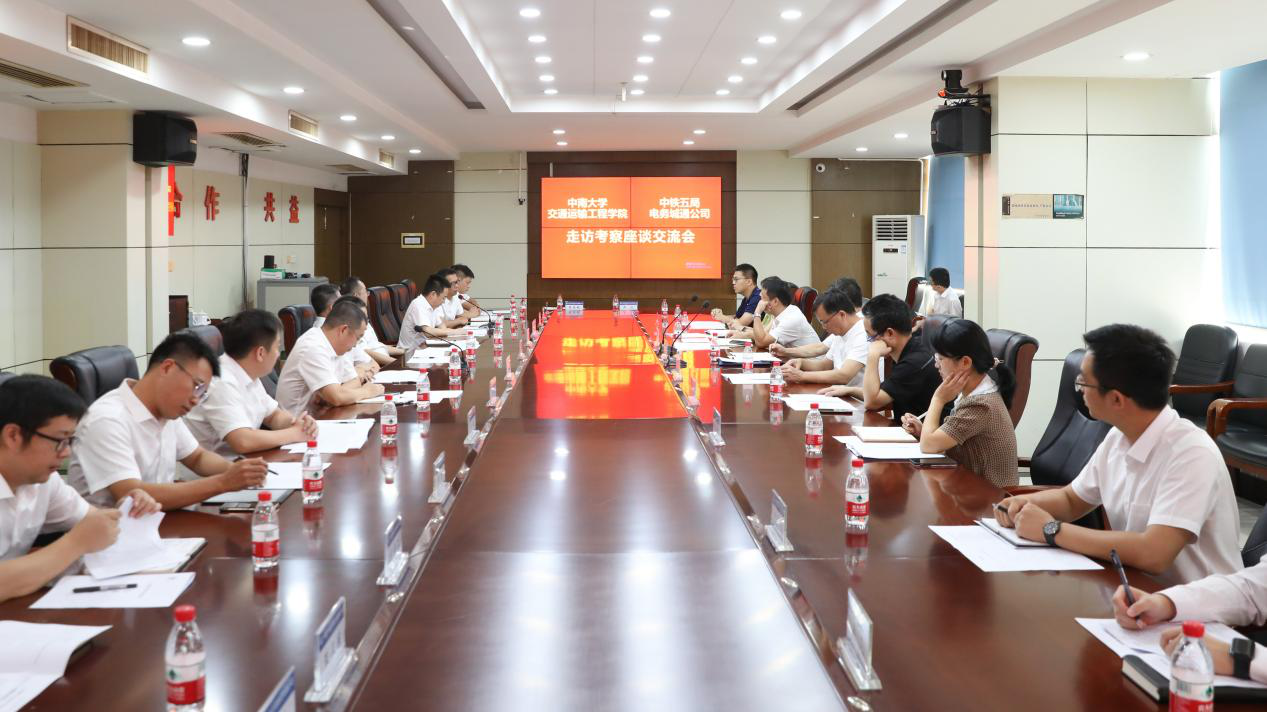 公司副总经理、总工程师赵松明首先致欢迎词,对我院一行表示热烈欢迎,并表达了希望通过此次交流座谈加深今后关于人才培养、校企合作的期待。公司党委书记邓波、党委副书记程斌分别介绍了目前公司的基本情况、企业发展、人才培养、中南大学在企校友情况以及目前人才需求等。邓书记对交通运输工程学院一直以来在人才培养和引进方面给予的大力支持表示感谢,公司中南校友众多,近年来学院为公司输送了一大批优秀人才,均已成为业务管理系统的骨干力量,为公司高质量发展提供了有力的人才支撑。希望双方能进一步拓宽合作广度和深度,聚焦人才培养、科研开发、技术攻关、资源共享等领域,开启校企携手共进的新篇章,在产学共赢上取得更好的成绩。