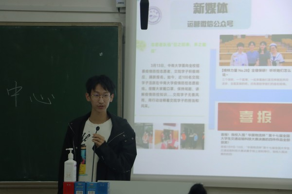 会议伊始,第七届新闻宣传中心主任王尚君对上一年的新闻宣传中心工作进行了总结并分享了工作体会。她回顾了自己在新闻宣传中心三年的工作历程,向大家分享了自己在工作过程中取得的收获,得出的宝贵经验。在发言的最后,她向学弟学妹们提出了殷切的期许和鼓励。
