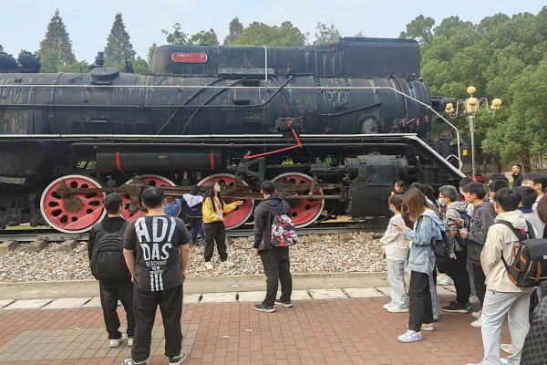 参观活动首先在铁路园开展,伴随科普基地志愿者的讲解,学员们先后参观了园内陈列的三辆机车——蒸汽机车、内燃机车和电力机车,这三辆机车象征我国轨道交通建设的三个历史方碑,代表了我国轨道交通从无到有,从弱到强,更新换代三个历史阶段。通过志愿者的讲解,学员们了解了铁道学院的建立与我国轨道交通发展史的渊源,知悉了铁路开拓者的艰苦奋斗故事,领略到我国轨道交通建设者的开拓进取精神。通过我国轨道交通建设者的故事,同学们坚定了在新时代传承铁路人精神的决心,表示要争取做勇担民族复兴重任的时代新人。