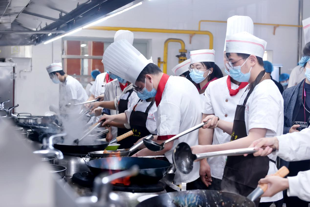 参赛队伍先对所需原材料进行粗加工,然后在厨师长导师的协助下,开始烹调起各自的菜品。灶台前,选手们个个胸有成竹,操作娴熟,锅具翻飞之间,一道道美味佳肴新鲜出炉。荔枝鱼、干锅虾、金钱蛋、毛氏红烧肉、酸菜鱼、糖醋里脊……参赛选手用精湛的厨艺,精美的摆盘,诱人的香味征服着在场每位评审的味蕾和眼球。