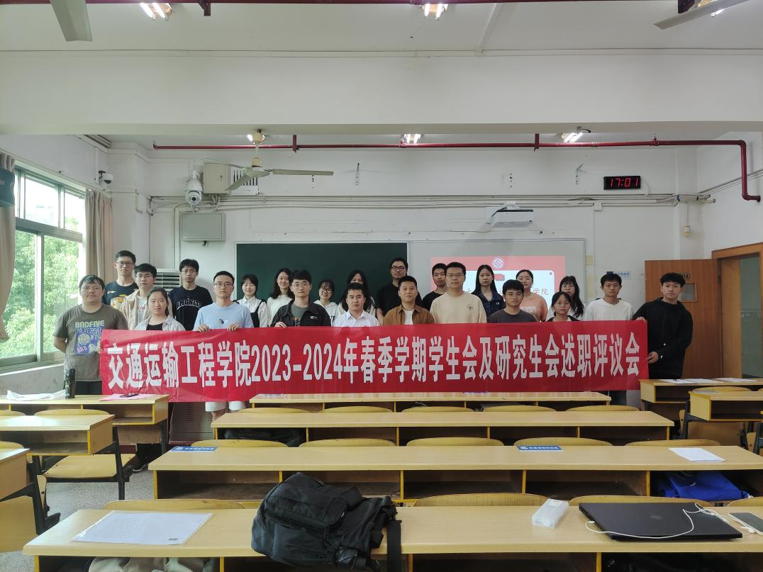 2023年5月24日下午15:00,交通运输工程学院2022-2023春季学期团委、学生会及研究生会述职评议会于铁道校区世纪楼A304举行。院团委书记张健、院团委副书记郑繁简、院团委、学生会、研究生会各部门负责人以及学生代表共70余人参加此次会议,其中部分学生代表线上参会。本次会议由学生会主席杨林乐主持。