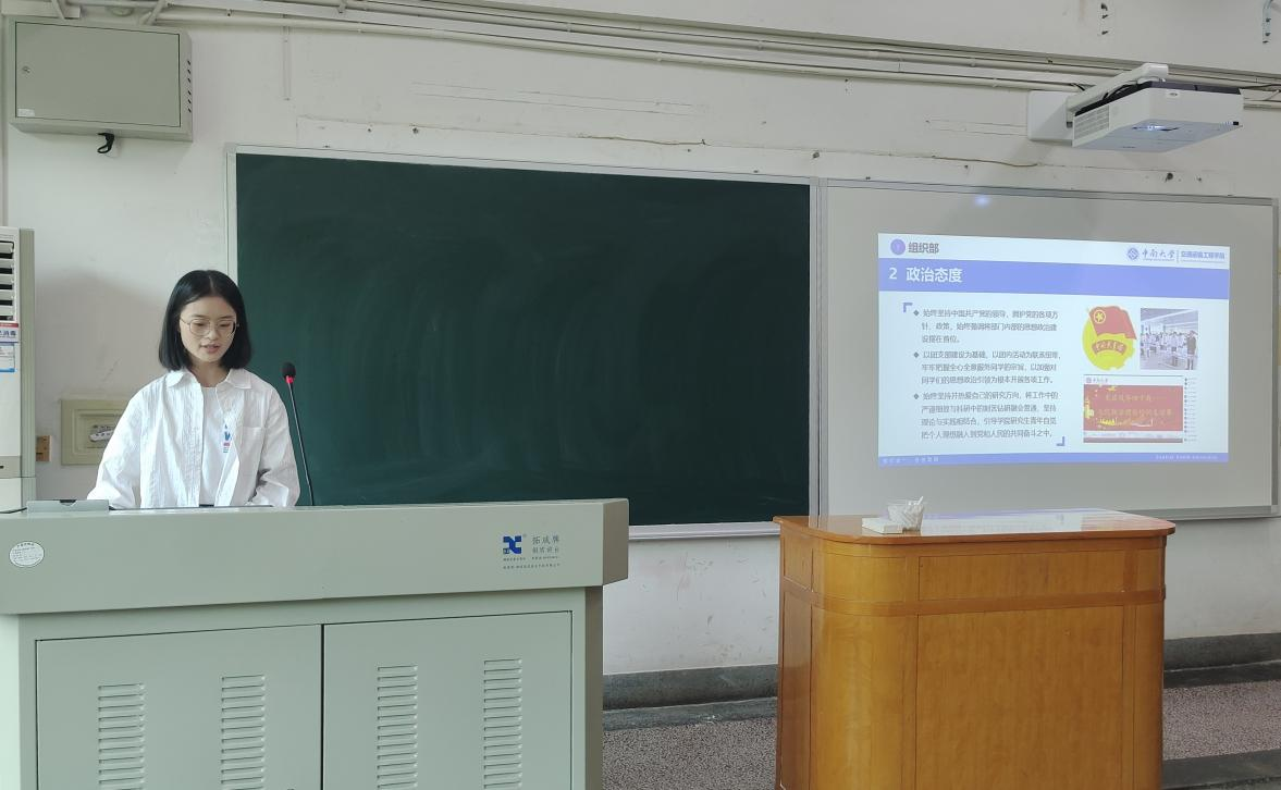 会上,院团委、学生会、研究生会主席团成员及各部门部长从政治态度、道德品行、学习情况、工作成效、纪律作风五个方面进行述职报告。汇报者结合自身工作和部门建设情况,汇报了本学年各部门取得的工作成效和尚存不足,总结成功经验与失败教训,并提出了具体解决方案。最后,各部门汇报了下一学年的部门规划和未来部门发展方向。随后,在场评委进行打分。