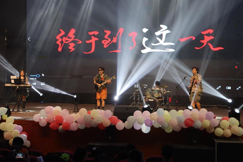 《我们的时代》唱出了飞扬青春与少年意气,这一乐队原创歌曲的演绎更是为他们本科生涯留下难以磨灭的印迹。舞蹈《碇步桥》再现了烟雨古韵里的曼妙舞姿,使观众们仿佛置身于安徽水乡,随舞者袅袅而行。2019级辅导员郑繁简老师与团干部们共同朗诵《毕业歌》,慷慨激昂,振奋人心,勉励广大学子奋发向上,勇担时代使命。晚会在歌曲《凤凰花开的路口》中落下帷幕,歌曲末,学院师生一同上台合唱,气氛浓厚,赢得了热烈地掌声。