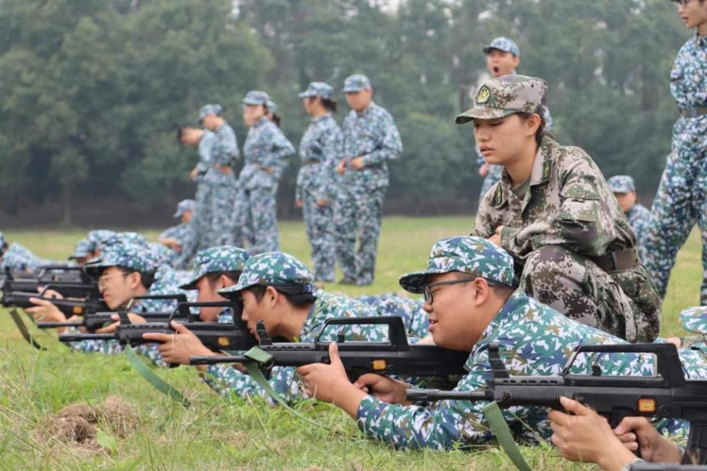 在连长的指挥下,同学们有序进行模拟射击训练,拿枪、卧倒、调整持枪姿势、上膛、射击,一套动作行云流水。连长和排长们在训练场上依次纠正同学们的卧姿错误,手把手地教授同学们正确的持枪姿势。训练场上,迷彩的军训服、坚定而期待的眼神、乌黑锃亮的模拟抢、严阵以待的姿势无不体现同学们紧张又兴奋的心情。