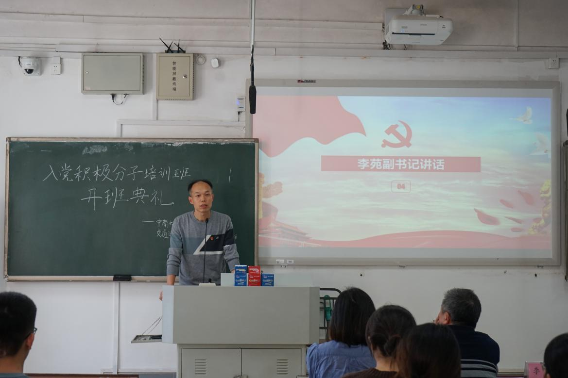随后,学院党委副书记李苑老师讲话。他对同学们提出了几点要求:第一,认真完成党课学习,团结协作,共同进步;第二,深入调查研究,提高对社会的认知和个人素质能力;第三,务实创新,继承学院优良传统并有所创新、有所突破、有所收获。最后,他祝愿本期培训班取得圆满成功,祝愿所有学员能够学有所获、学有所成,更进一步向党组织靠拢。