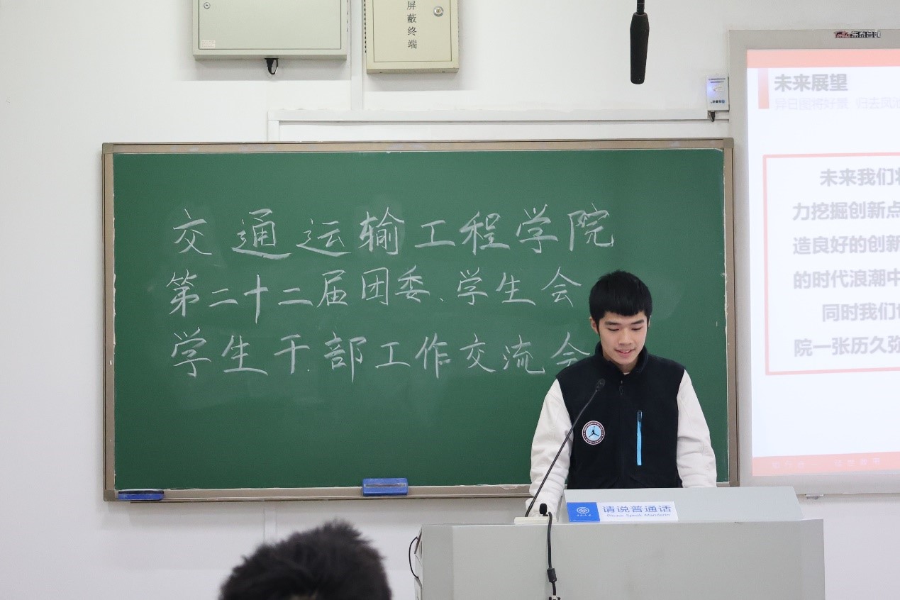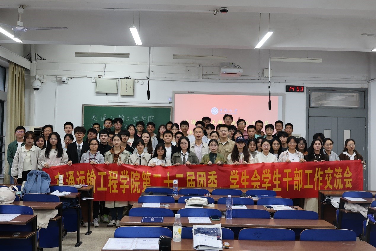 11月4日下午14:30,交通运输工程学院于新校区教学楼A117召开第二十二届团委、学生会学生干部工作交流会。本次会议邀请交通院党委副书记李苑,院团委书记张健,院团委副书记郑繁简出席,由团委、学生会主席吉文韬主持,团委、学生会全体成员参加。